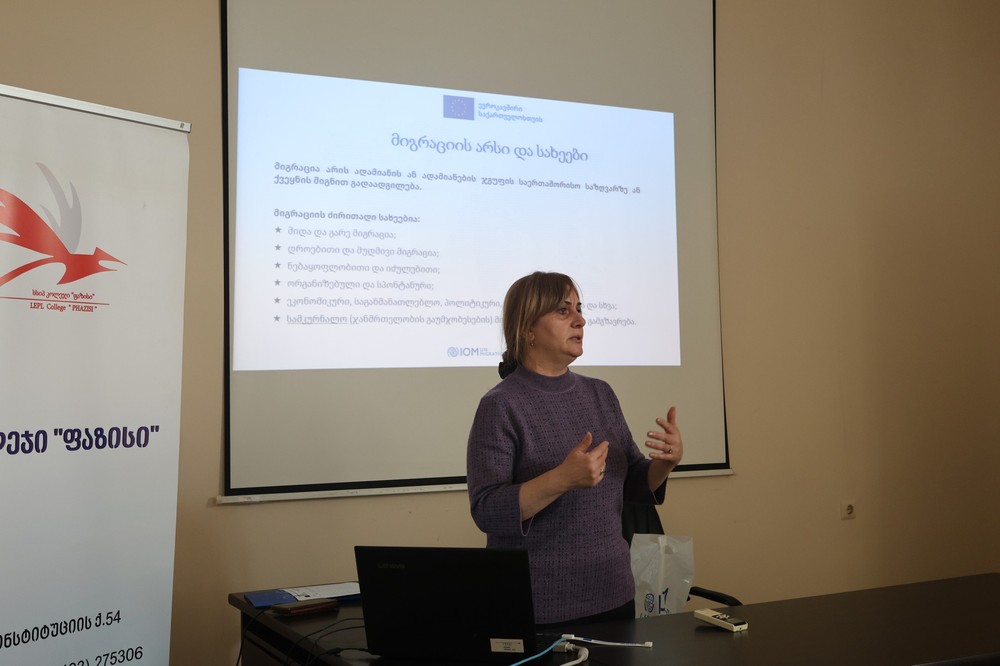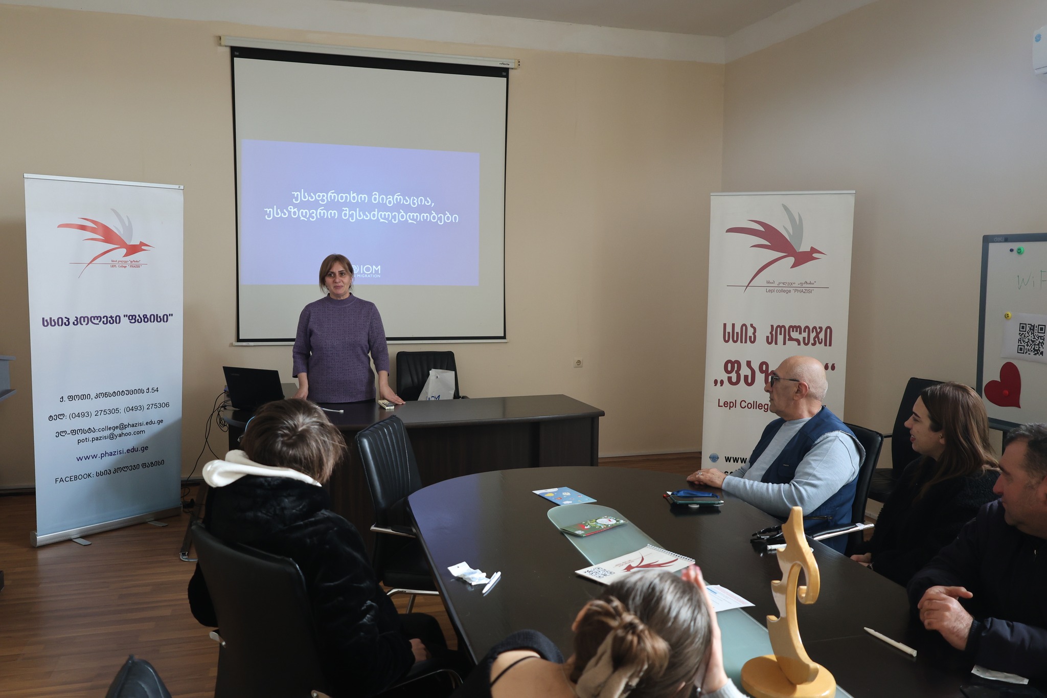 სსიპ კოლეჯში „ფაზისი“ პროფესიული განათლების მასწავლებლებისა და პროფესიული სტუდენტებისთვის მიგრაციის საერთაშორისო ორგანიზაციის (IOM) წარმომადგენელმა, ნანა წულაიამ, საინფორმაციო ხასიათის შეხვედრა გამართა.