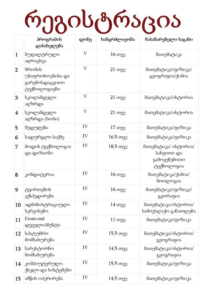 2026 წელს, ერთიანი ეროვნული გამოცდების ფარგლებში, სწავლის მსურველებს გეძლევათ უნიკალური შანსი! რეგისტრაციისას, საბაკალავრო პროგრამებთან ერთად, პორტალზე online.naec.ge აირჩიეთ სსიპ კოლეჯი „ფაზისი“ და დაეუფლეთ სასურველ პროფესიას სახელმიწფოს მხრიდან სრული დაფინანსებით!